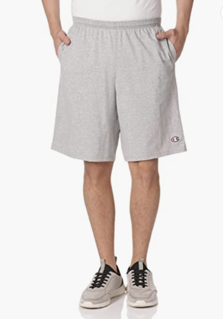 Champion® Classic Cotton Knit Workout Shorts are a simple essential with comfort and quality. Can be used as training shorts, running shorts, or running shorts with kids. With all the comfort of your favorite t-shirts, they're knitted from soft, lightweight cotton that's grown in the USA, traceable, and produces 2-5 times less water. These basic jersey gym shorts are super comfortable and feature an elasticated drawstring waistband and 3 stitch stitching for durability. Deep side seam pockets provide easy storage for your phone, ID and keys. The long, loose silhouette has a 9" inseam to the knee. Keep these effortless cotton jersey workout shorts close by for serious workouts, movie nights on the couch and everything in between.