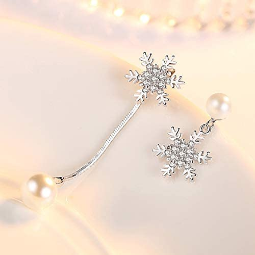Mismatched's Women's Earrings, Zircon Inlaid Snowflake Drop Pearl Earrings, Zinc, Pearls