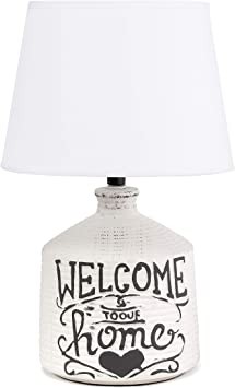 Simple Designs LT1066-HME Welcome Home Ceramic Farmhouse Table Lamp